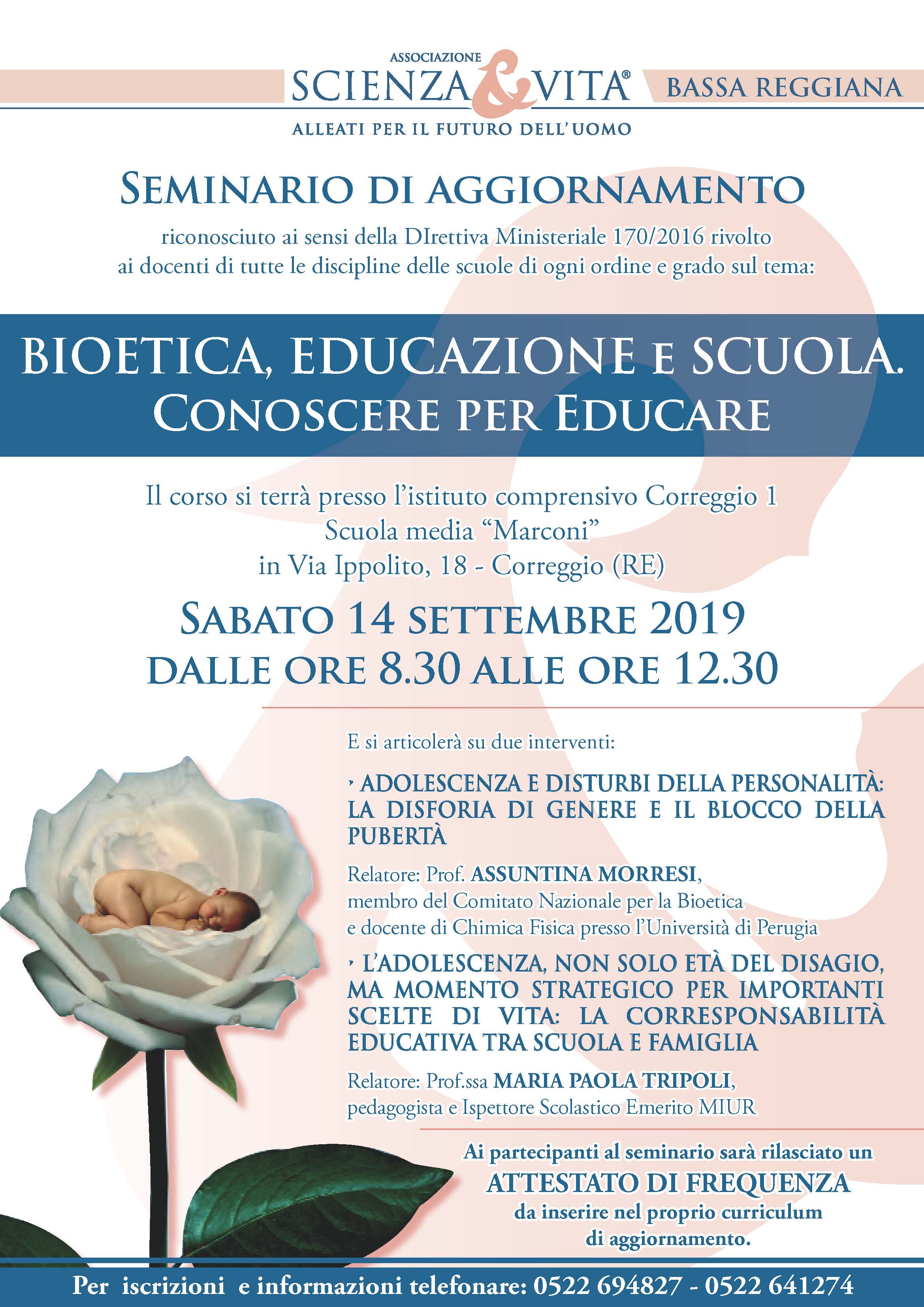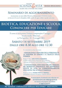 CORREGGIO (RE) | BIOETICA, EDUCAZIONE E SCUOLA. CONOSCERE PER EDUCARE | SABATO 14 SETTEMBRE 2019 | ORE 8:30