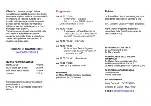 All’evento prenderà parte il dr. Paolo Marchionni, vice-presidente nazionale dell’Associazione Scienza & Vita. Evento accreditato ECM per tutte le figure sanitarie.