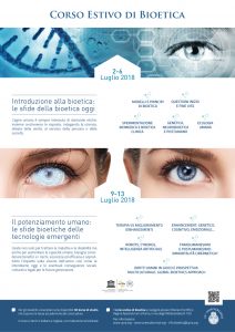 Dal 2 al 6 luglio 2018 si svolgerà la prima settimana del Corso Estivo di Introduzione alla Bioetica. Il corso è organizzato dalla Facoltà di Bioetica dell’Ateneo Pontificio Regina Apostolorum. Dal 9 al 13 luglio si svolgerà il corso monografico della seconda settimana su “Il potenziamento umano: le sfide bioetiche delle tecnologie emergenti”. Il corso estivo è patrocinato dalla Cattedra UNESCO in Bioetica e Diritti Umani. Approfondisci qui
