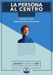 E’ lo scrittore Alessandro D’Avenia il primo ospite del format “La persona al centro”, organizzato da UCBM.