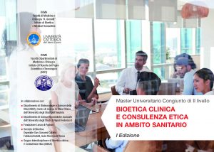 Il Master Universitario Congiunto di II livello in BIOETICA CLINICA E CONSULENZA ETICA IN AMBITO SANITARIO è promosso dall’Istituto di Bioetica e Medical Humanities dell’Università Cattolica del Sacro Cuore di Roma e dall’Istituto di Filosofia dell’Agire Scientifico e Tecnologico dell’Università Campus Bio-medico di Roma in collaborazione con il Dipartimento di Biotecnologie e Scienze della Vita (DBSV), Centro di ricerca in Etica Clinica dell’Università degli Studi dell’Insubria, il Dipartimento di Scienze biomediche avanzate dell’Università degli Studi di Napoli Federico II, la Fondazione Lanza di Padova, il Servizio di Bioetica dell’Ospedale San Giovanni Calibita Fatebenefratelli, Isola Tiberina di Roma, il Gruppo Interdisciplinare di Bioetica clinica e Consulenza etica (GIBCE).