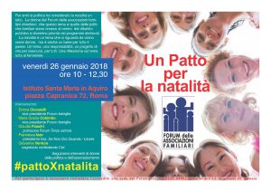 La presentazione del #pattoXnatalità fatta la settimana scorsa al Senato, a cura del FORUM DELLE ASSOCIAZIONI FAMILIARI, ha posto all’attenzione del dibattito politico e pre elettorale il tema del drammatico inverno demografico che sta attraversando il Paese. In questo secondo appuntamento lo presenteranno le donne della società civile. Invito