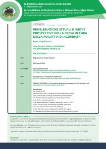 ROMA | PROBLEMATICHE ATTUALI E NUOVE PROSPETTIVE NELLA PRESA IN CURA DELLA MALATTIA DI ALZHEIMER | 8 APRILE 2019 | ORE 15:00