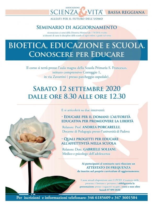 9 Marzo 2022S&V BASSA REGGIANA | SEMINARIO: BIOETICA EDUCAZIONE E SCUOLA. CONOSCERE PER EDUCARE | 12 Settembre 2020 12 set 2020, S&V Bassa Reggiana: seminario sul tema “Bioetica, educazione e scuola. Conoscere per educare” ultimo aggiornamento il 9 Marzo 2022