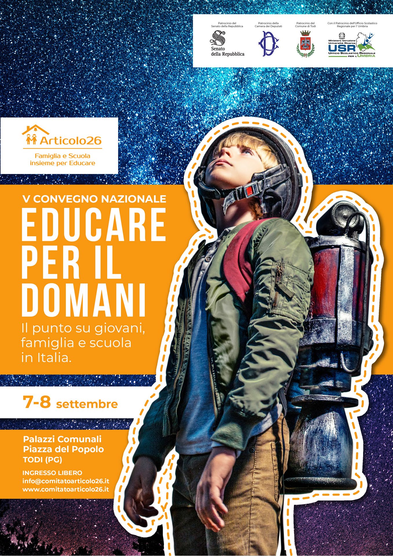 E’ oramai prossimo l’appuntamento a Todi con il convegno “Educare per il domani. Il punto su giovani, famiglia e scuola in Italia”, organizzato dall’Associazione Articolo 26 in collaborazione con lo stesso Comune di Todi, con il patrocinio del Senato e della Camera dei Deputati e dell’Ufficio Scolastico per l’Umbria.