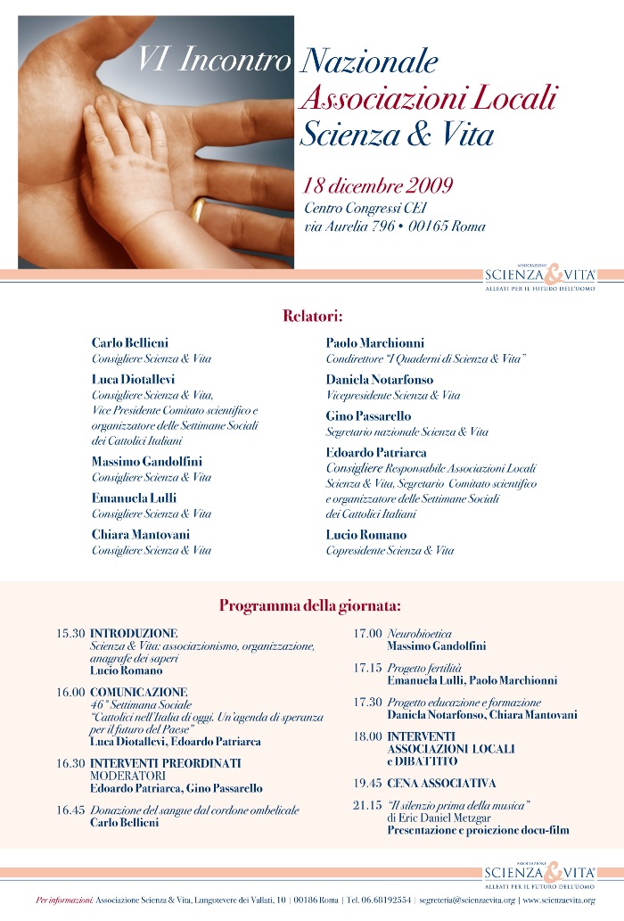 VI INCONTRO NAZIONALE ASSOCIAZIONI LOCALI S&V 18 Dicembre 2009 Cari Amici, con l’auspicio di incontrarci tutti vi porgiamo i nostri più cari saluti. I presidenti Bruno Dallapiccola Lucio Romano