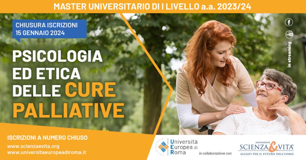 Per rispondere concretamente alla crescente domanda di esperti che possano occuparsi del malato e delle sue condizioni, l’Università Europea di Roma, in collaborazione con l’Associazione Scienza & Vita, ripropone anche quest’anno – forte della positiva esperienza della passata edizione – il Master in “Psicologia ed etica delle cure palliative”.