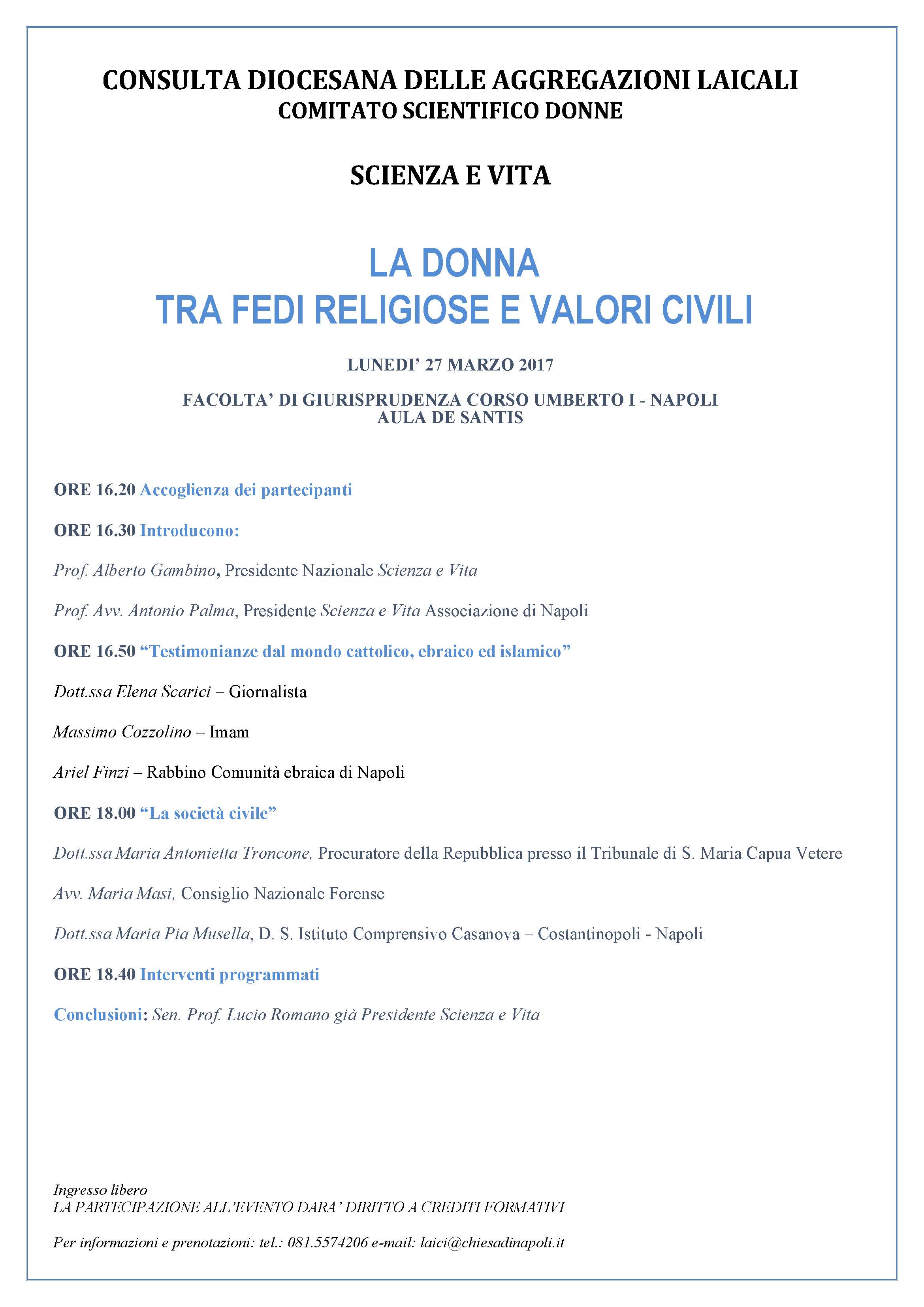 Il presidente A. GAMBINO in occasione dell’incontro LA DONNA TRA FEDI RELIGIOSE E VALORI CIVILI, organizzato dall’ Ass.ne locale Scienza & Vita Napoli.